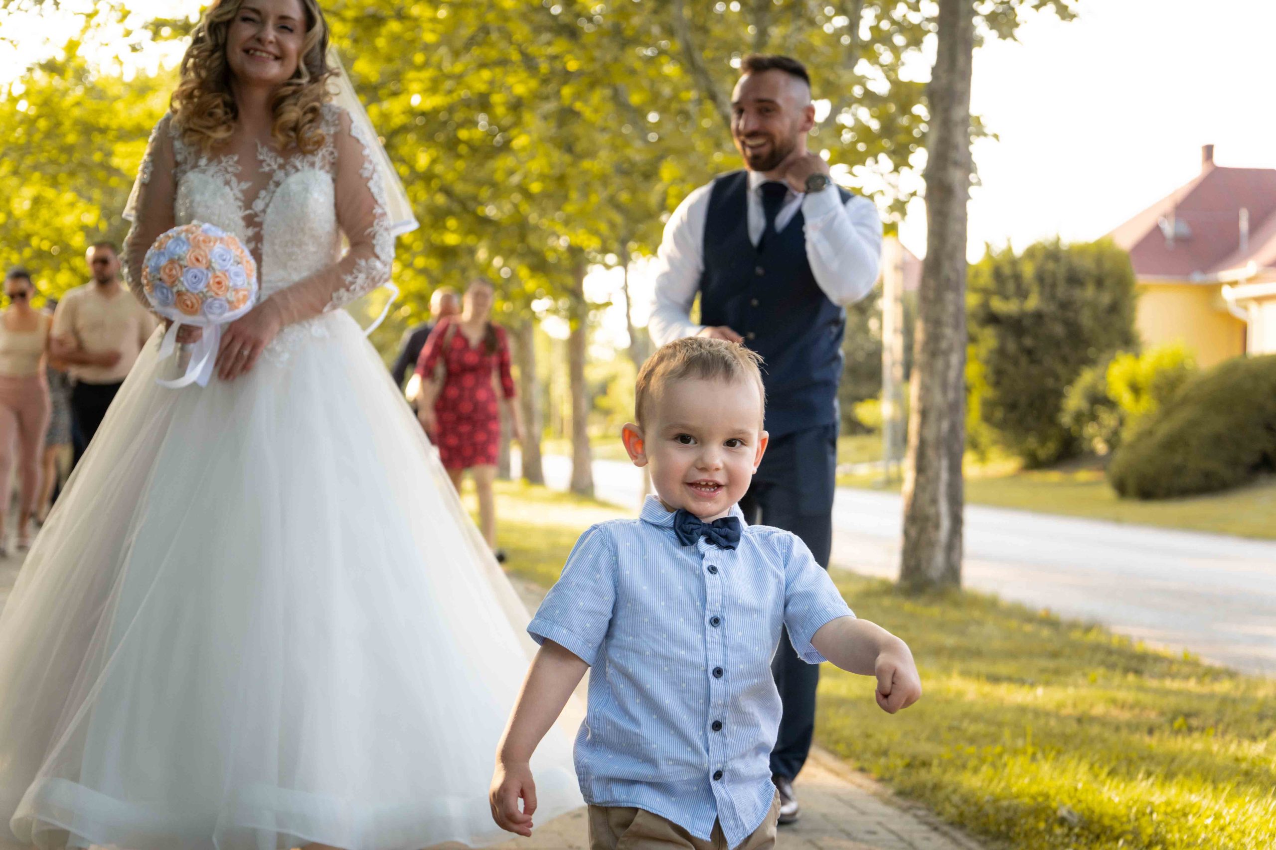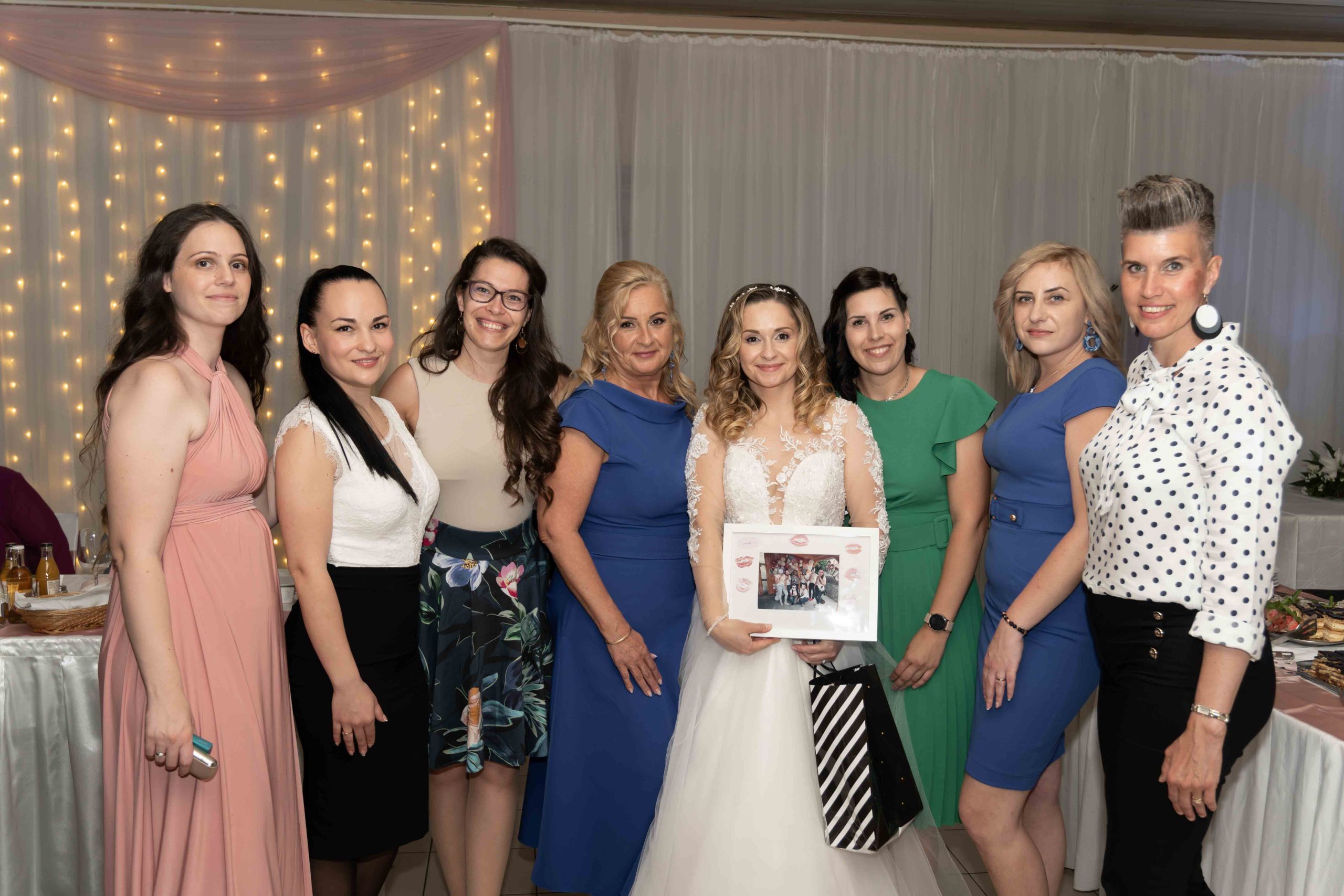 Ők is egy közös ismerős ajánlására találtak rám. A hivatalos részt a rácalmási házasságkötő teremben tartották, ami után kimentünk a tóhoz a kötelező csoportképekre. Itt nem volt egyszerű dolgunk, mert elég kemény, erős fényekkel találtuk szembe magunkat, de megoldottuk.