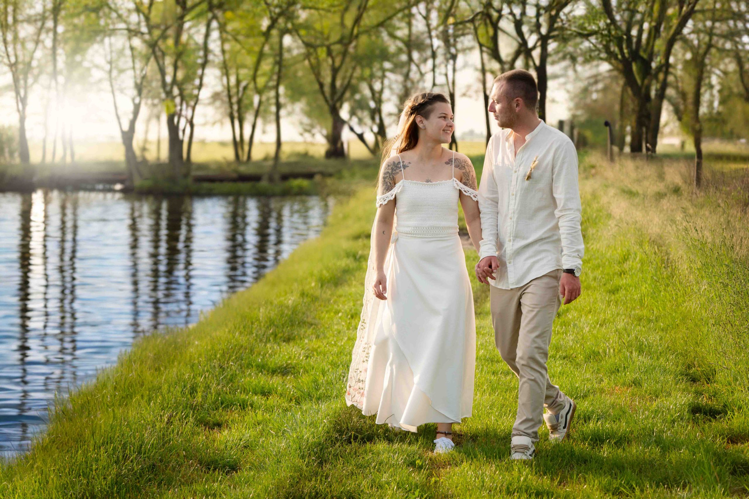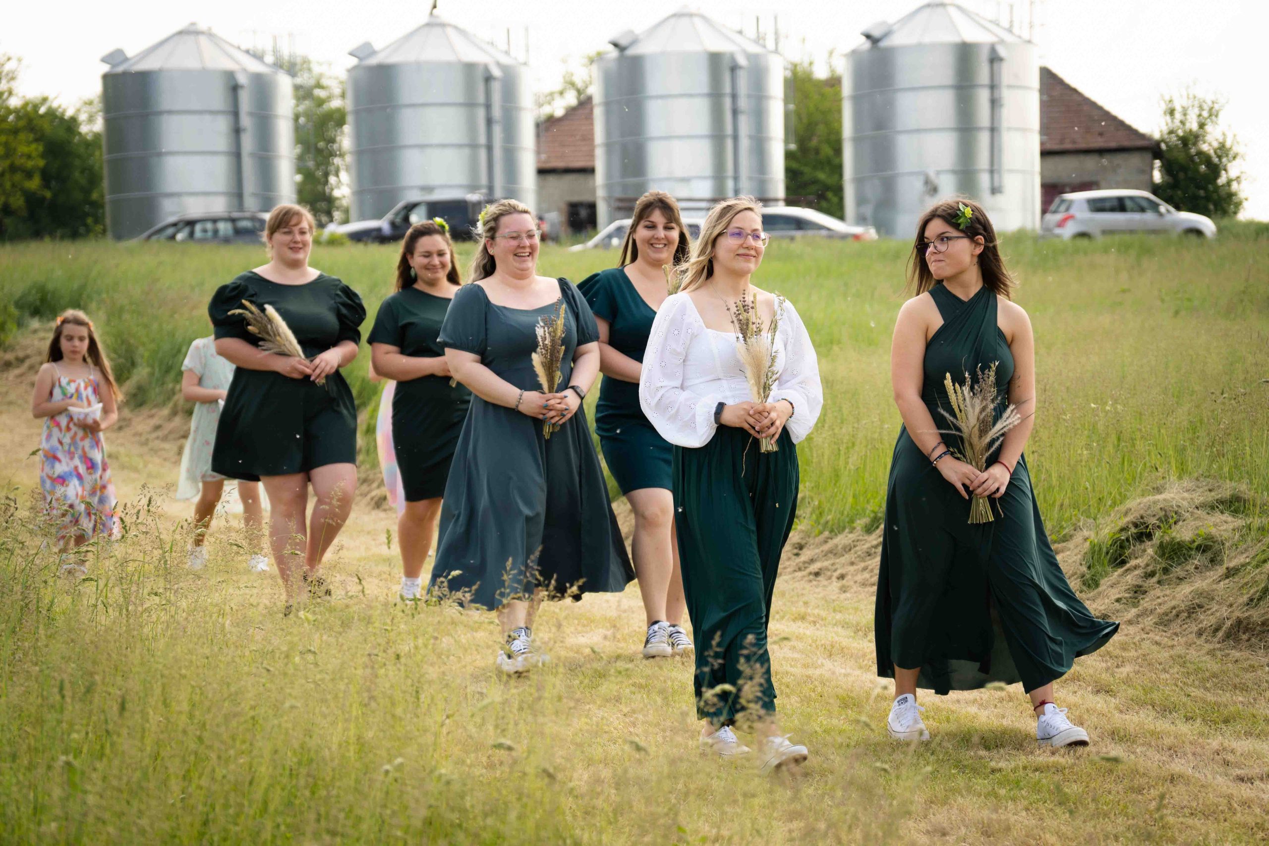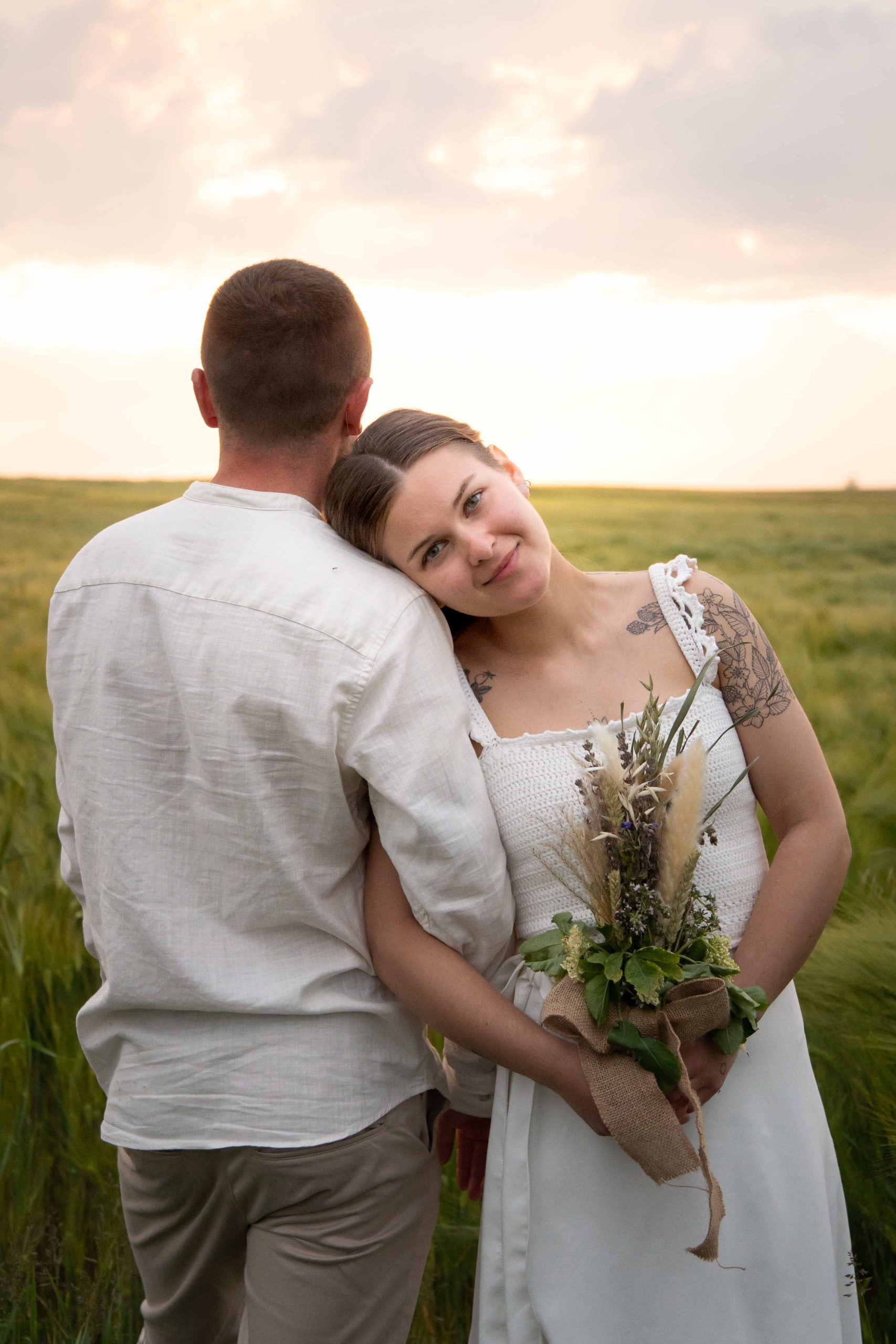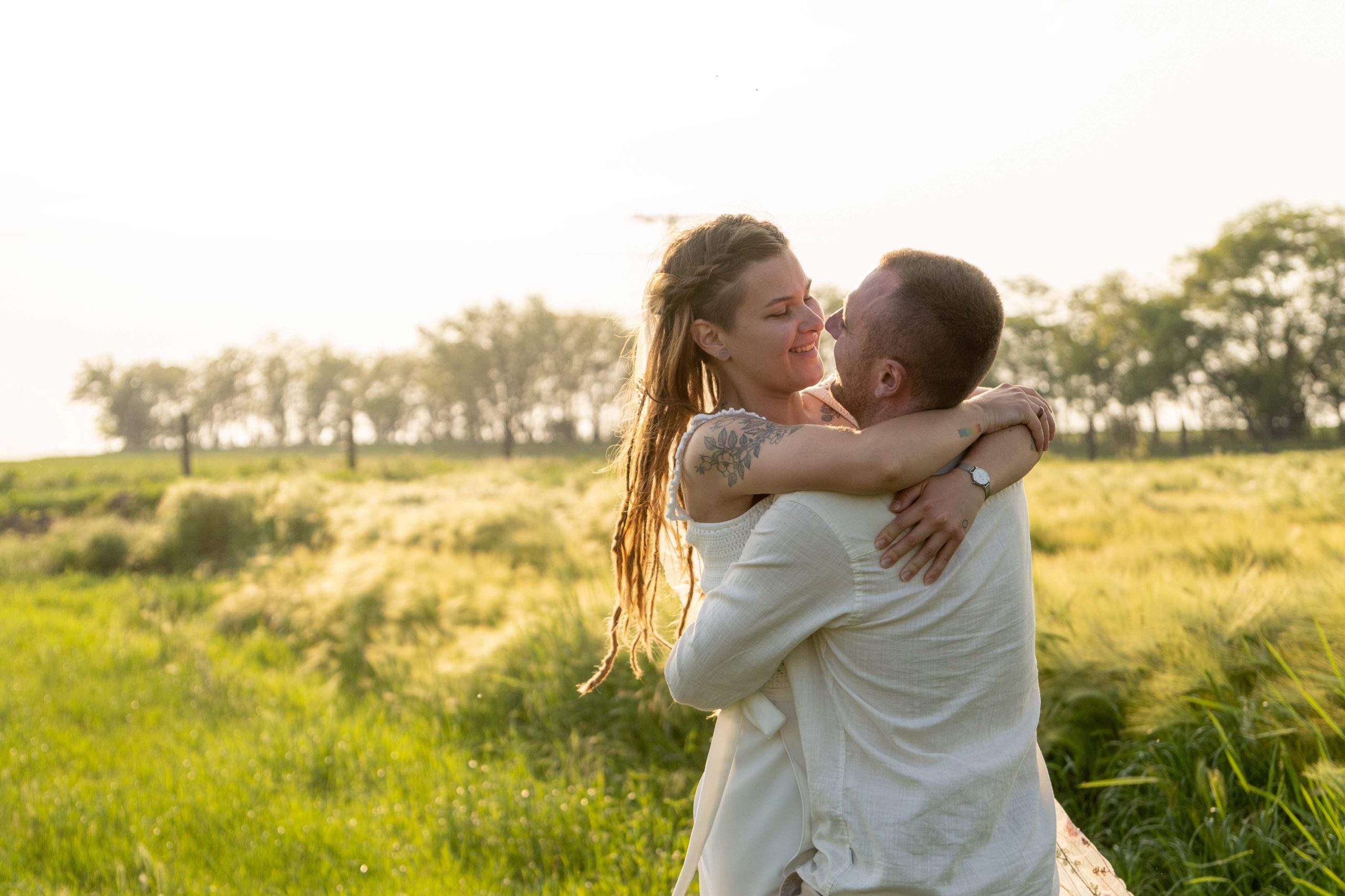 Szívből jövő pillanatok A formalitások helyett valódi érzelmeket kaptunk. A homoköntés helyett közös faültetéssel pecsételték meg a fogadalmukat – ami szerintem gyönyörű szimbóluma a közös jövőnek. A naplementében, a búzatáblában készült kreatív fotóknál pedig semmit nem kellett „beállítani”. Csak hagytam őket létezni, ölelni és nevetni.